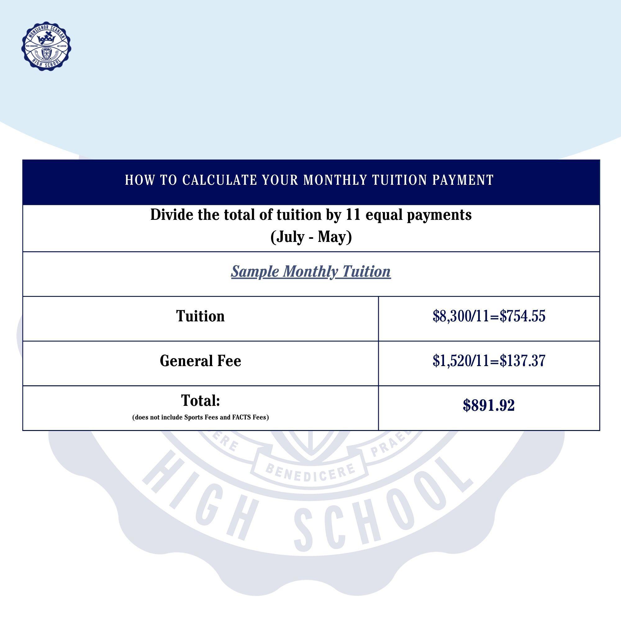- Payment Installments: Spread tuition & fees over 11 months, starting from July and concluding in May.